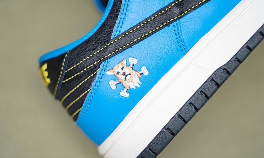 整双鞋采用清爽的白蓝色调撞色拼接而成,并饰以黑色 Swoosh 以及后跟细节点缀。 instant 标志性的“狗头 logo”刺绣出现在后跟,极其醒目,彰显了特殊联名身份。