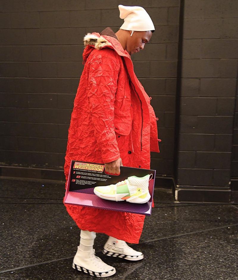 威少作为NBA中的潮流先锋,除了场上劲爆的打法赏心悦目之外,场下的入场穿搭也是一道靓丽风景。在Jordan正式为他推出签名鞋之后,设计师也为他带来不少个性的配色选择,水枪配色逐渐成为威少的一个标志配色。