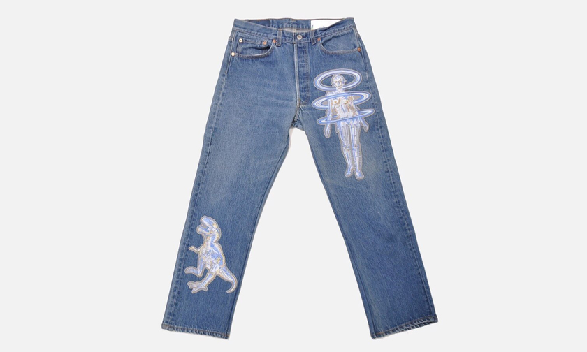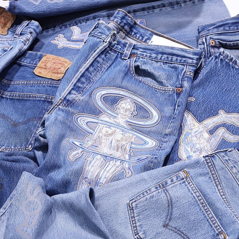 近日,日本艺术家空山基除了进行 TREX 艺术展以外,还与 2G TOKYO 携手打造了“ReArt”Levi’s 定制款。这款定制以美产 501 裤型为基础,注入空山基标志性机器人、恐龙元素以及 2G logo 设计,辨识度与艺术气息爆棚。精美的刺绣与裤型复古气质碰撞,也相信潮流爱好者们都会喜欢。目前空山基 x 2G TOKYO “ReArt” Levi’s 定制款售价为 10 万日元每条,喜欢的朋友可以选择渠道入手。