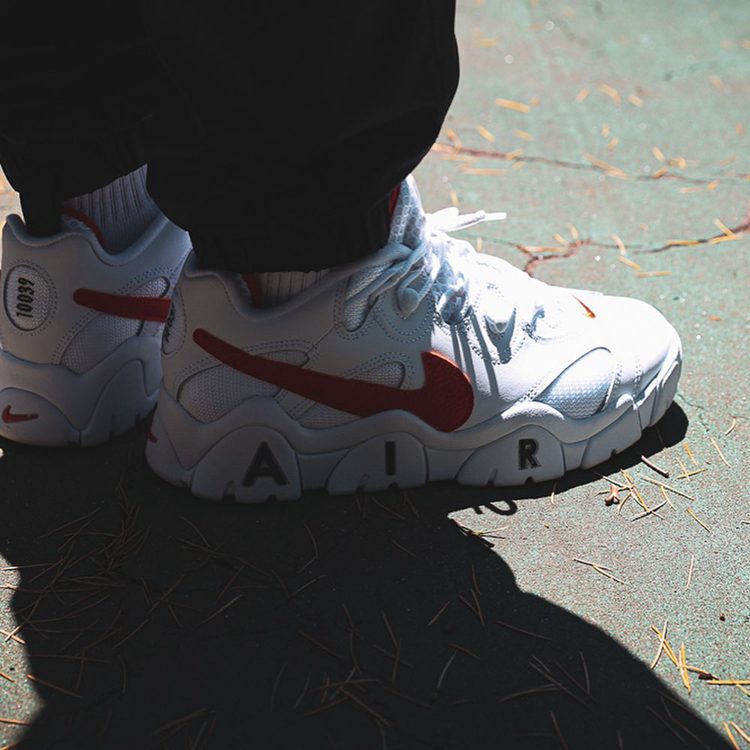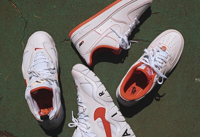 以享誉世界的“篮球圣地”纽约市哈林区洛克公园为主题,Nike 以 Air Force 1 和 Air Barrage Low 为原型打造了全新系列。近日,日本知名球鞋店铺 atmos 为我们带来了上脚美照。