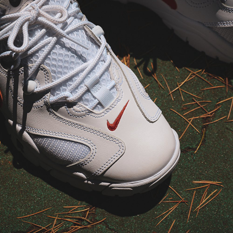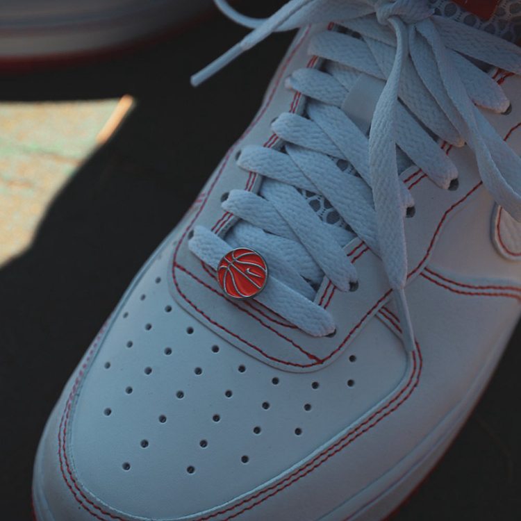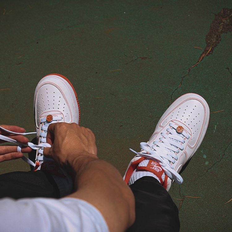 两双鞋均以白色为底色,辅以橙色细节勾勒,营造出清新活力氛围。Air Force 1 鞋头前的篮球造型鞋带扣以及两双鞋后跟代表洛克公园地区号码的10039 刺绣,点明了本次主题。