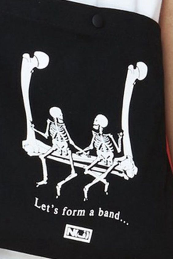 黑色作为主要基调,跳跃的音符印花与经典的骨骼设计注入,风格鲜明,街头潮流氛围浓郁。目前该系列单品已上架 The Sabotage 官网发售,喜欢的朋友可以前往选购。