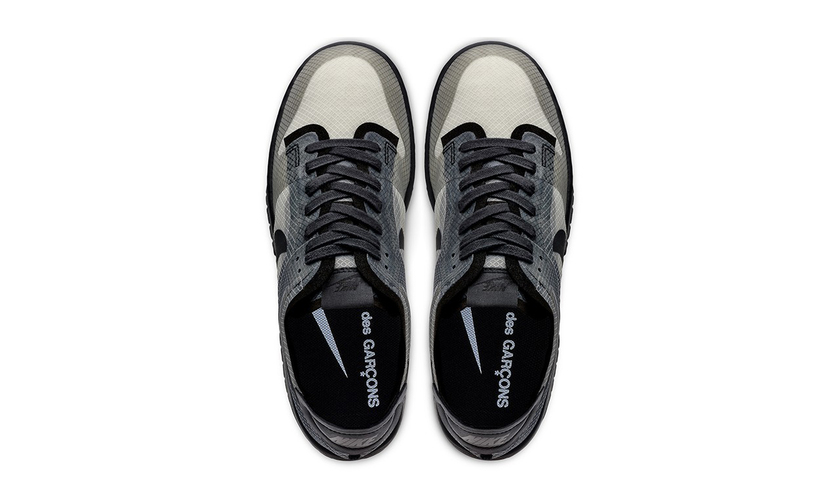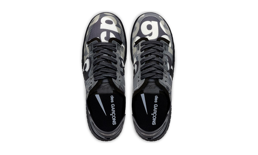 两款配色不同之处在于其中一款注入了COMME des GARCONS 的字母组合印花,辨识度与抢眼效果更强,适合追求个性的潮流玩家上脚。