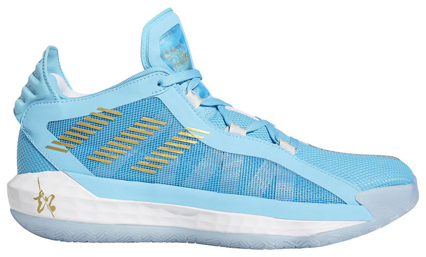 马超配色 Dame 6 则以蓝白色调搭配金色细节示人,后跟点缀的国风“超”字与外底长枪图案,辨识度极强。