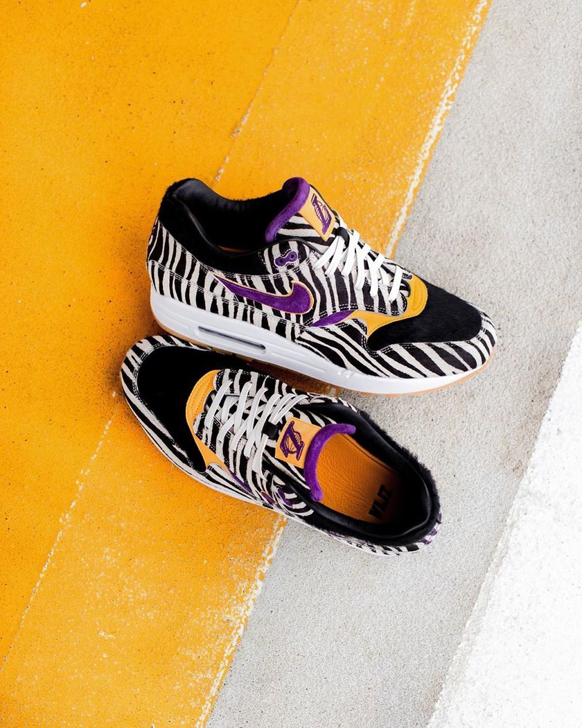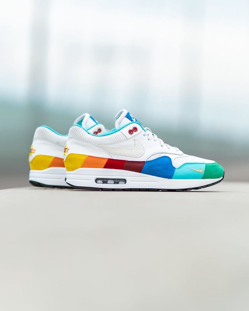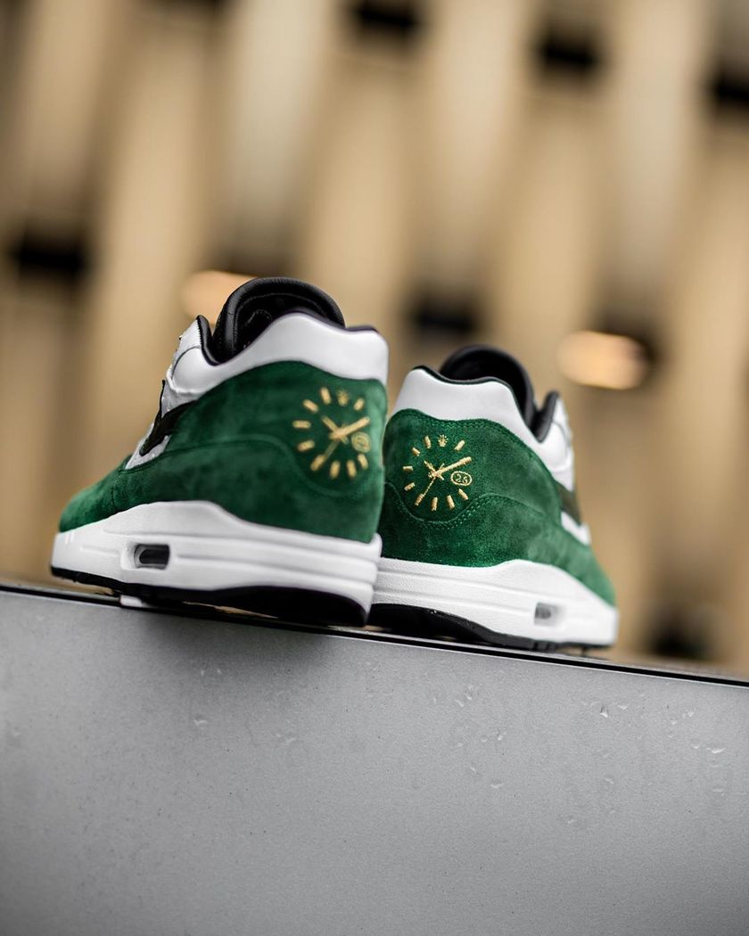 此外, AJ 1 鞋舌后跟处的劳力士 Logo 与 Air Max 1 后跟处的表盘刺绣也颇为醒目,点明了本次设计主题。