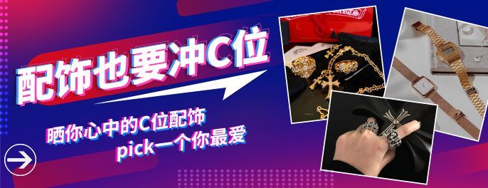 晒晒你的C位配饰,并@get管理员,关注并添加话题#我的潮流单品#,即可参与!