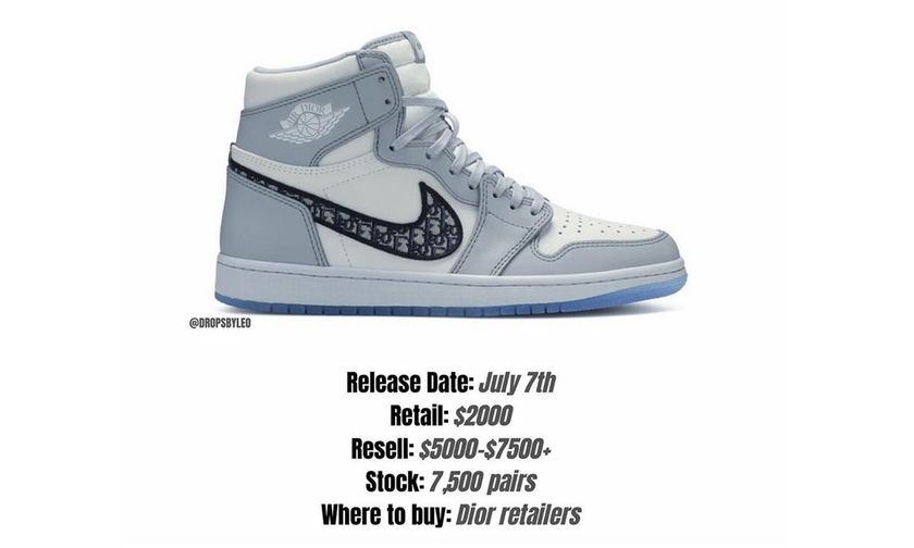 而继多位明星、艺术家、潮流大佬晒出该联名实物以及迪奥官网官网宣布“Coming Soon”之后,此番 ins 球鞋情报账号 @dropsbyleo 终于为我们带来了 Air Dior 的进一步发售信息: Dior x Air Jordan 1 将于 7 月 7 日正式发售!