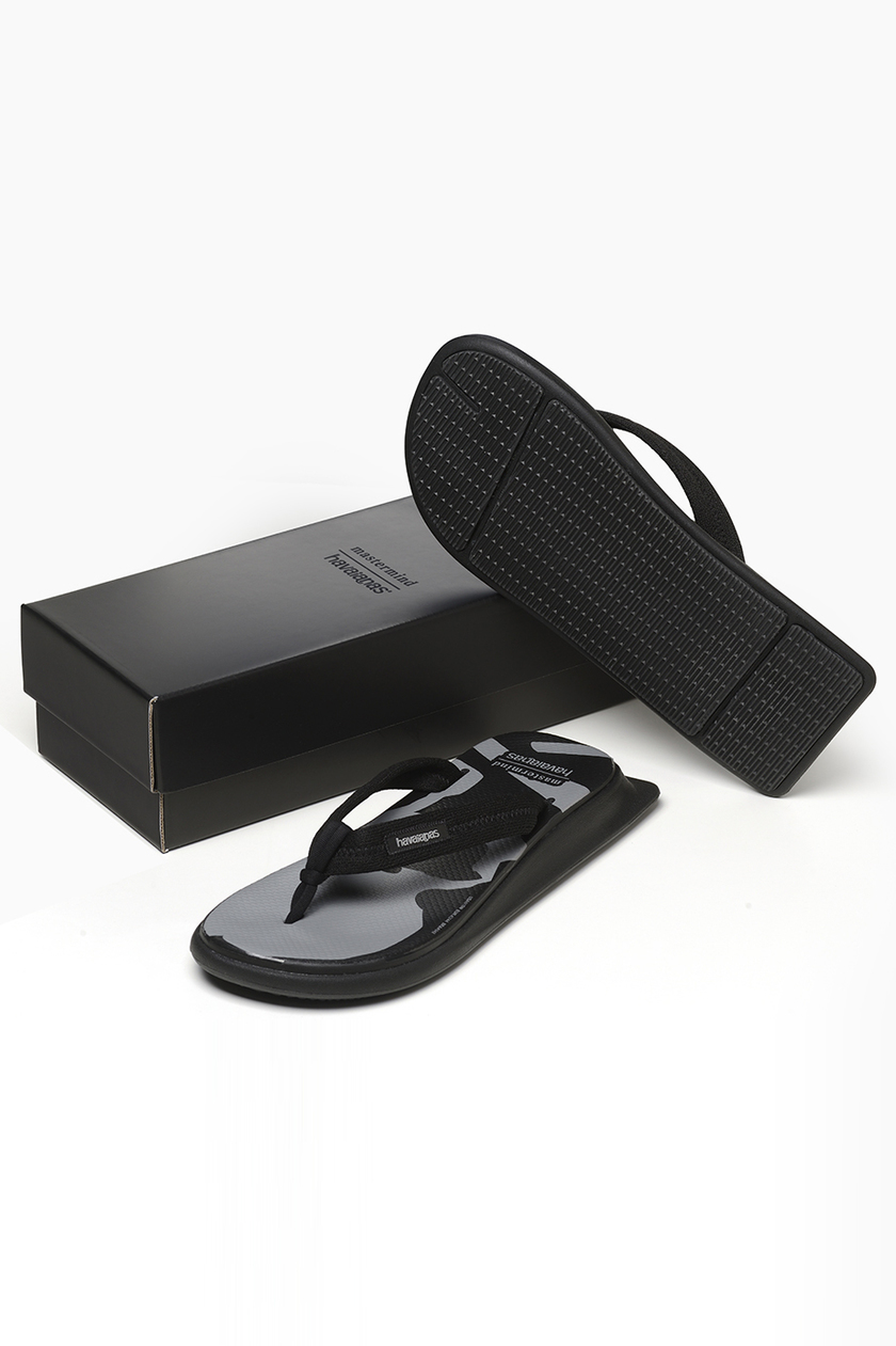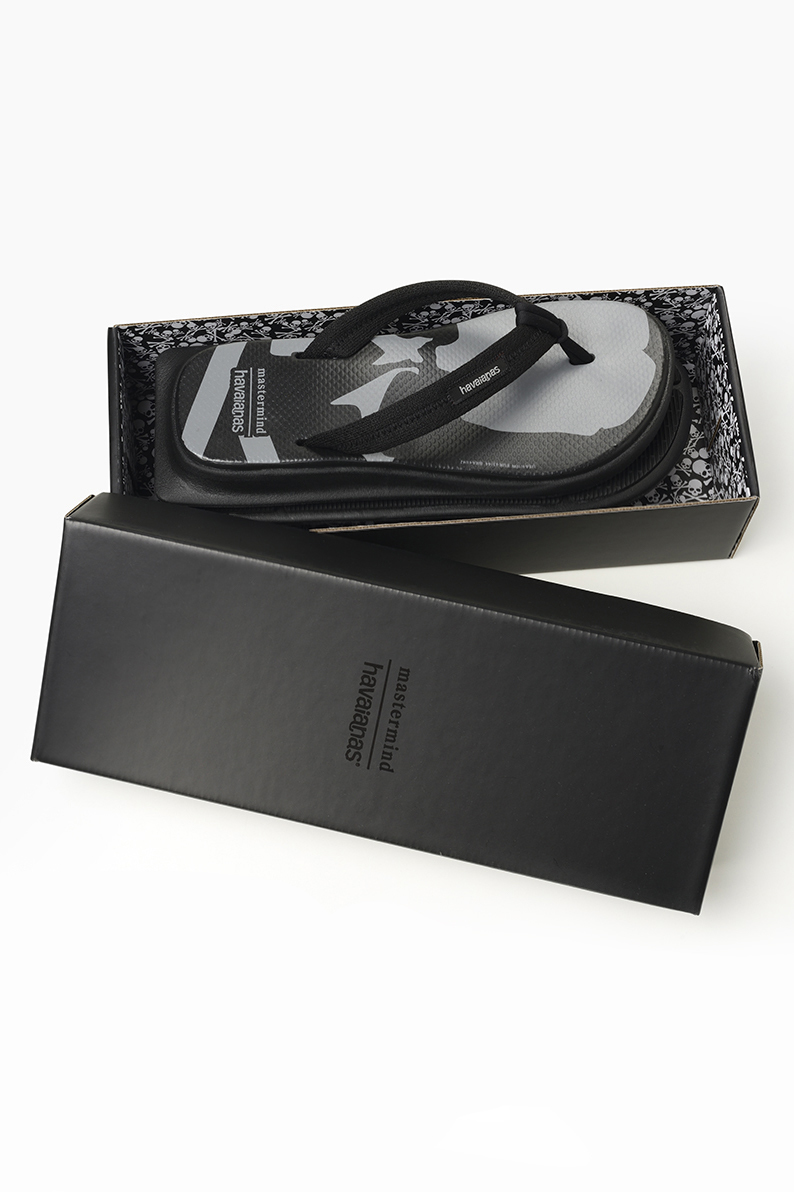 Havaianas 哈唯纳打破传统人字拖的定义,重塑经典人字拖鞋款,带来全新 Tradi Zori 鞋款。以 mastermind JAPAN 的奢华暗黑美学为基调,在黑与白的色彩碰撞中加入 Havaianas 哈唯纳和 mastermind JAPAN 标志性的 Logo,彰显浓厚的联名气息和潮酷的街头风格,同时也演绎了 Havaianas 哈唯纳的张扬个性和潮流态度。