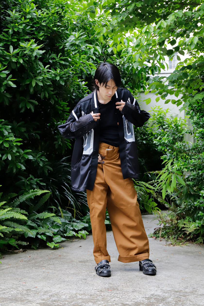 本次“874”工装裤增添了背带设计,并饰有刺绣作为点缀,风格潮酷不失活力,而工装短裤灵感来源于 FACETASM 大热短裤款式,皮质环扣元素融入,创意爆棚。