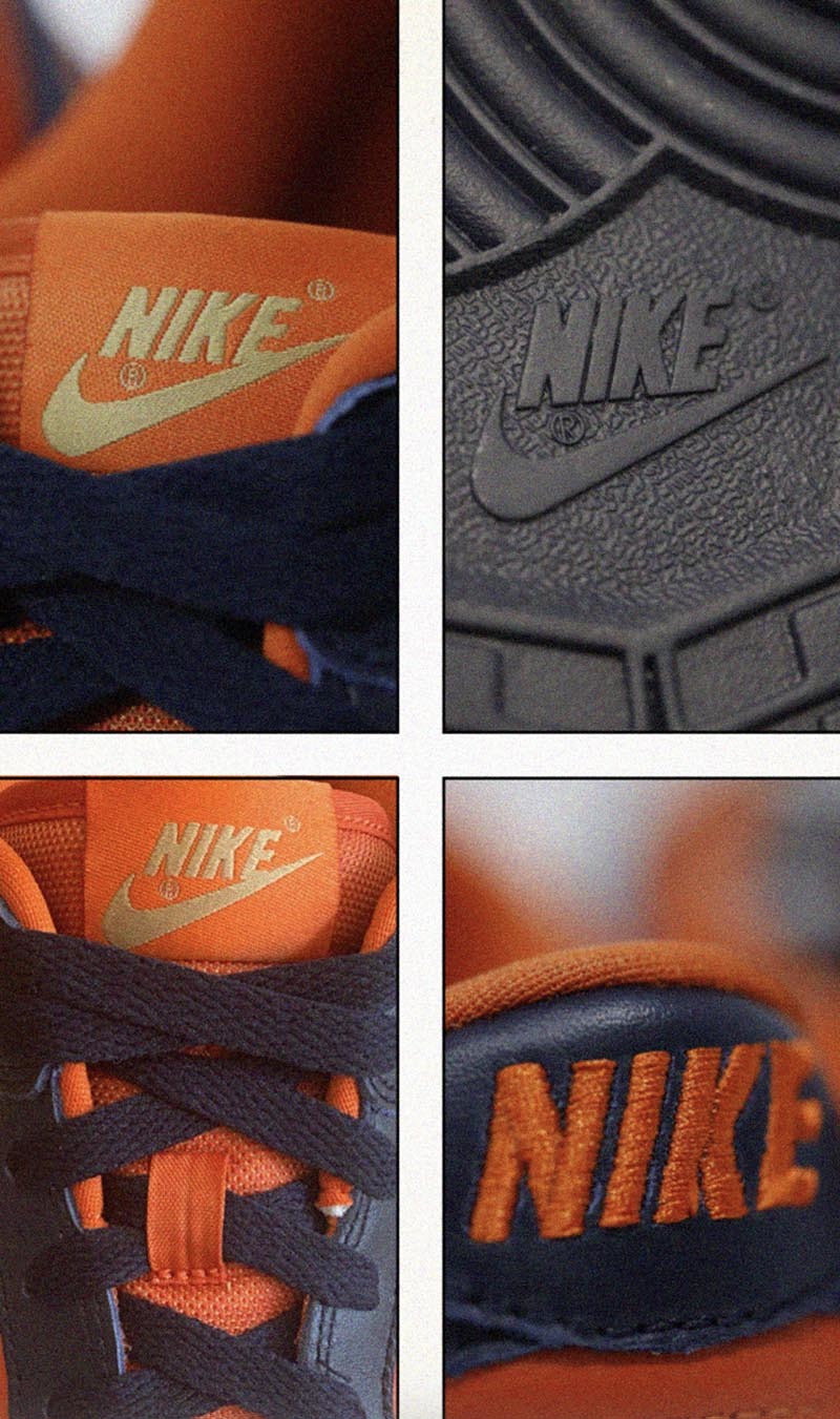 这款配色采用醒目的撞色拼接示人,海军蓝色调搭配橙色的组合,校园风格满满。加上 Dunk Low 经典低帮造型,夏日上脚效果讨喜。