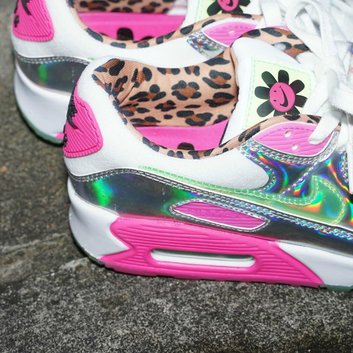 这两款配色一款以白色主打,饰以亮粉装扮点缀。鞋头鞋侧全息渐变材质塑造,饰以内衬豹纹图案点缀,吸睛度爆棚。