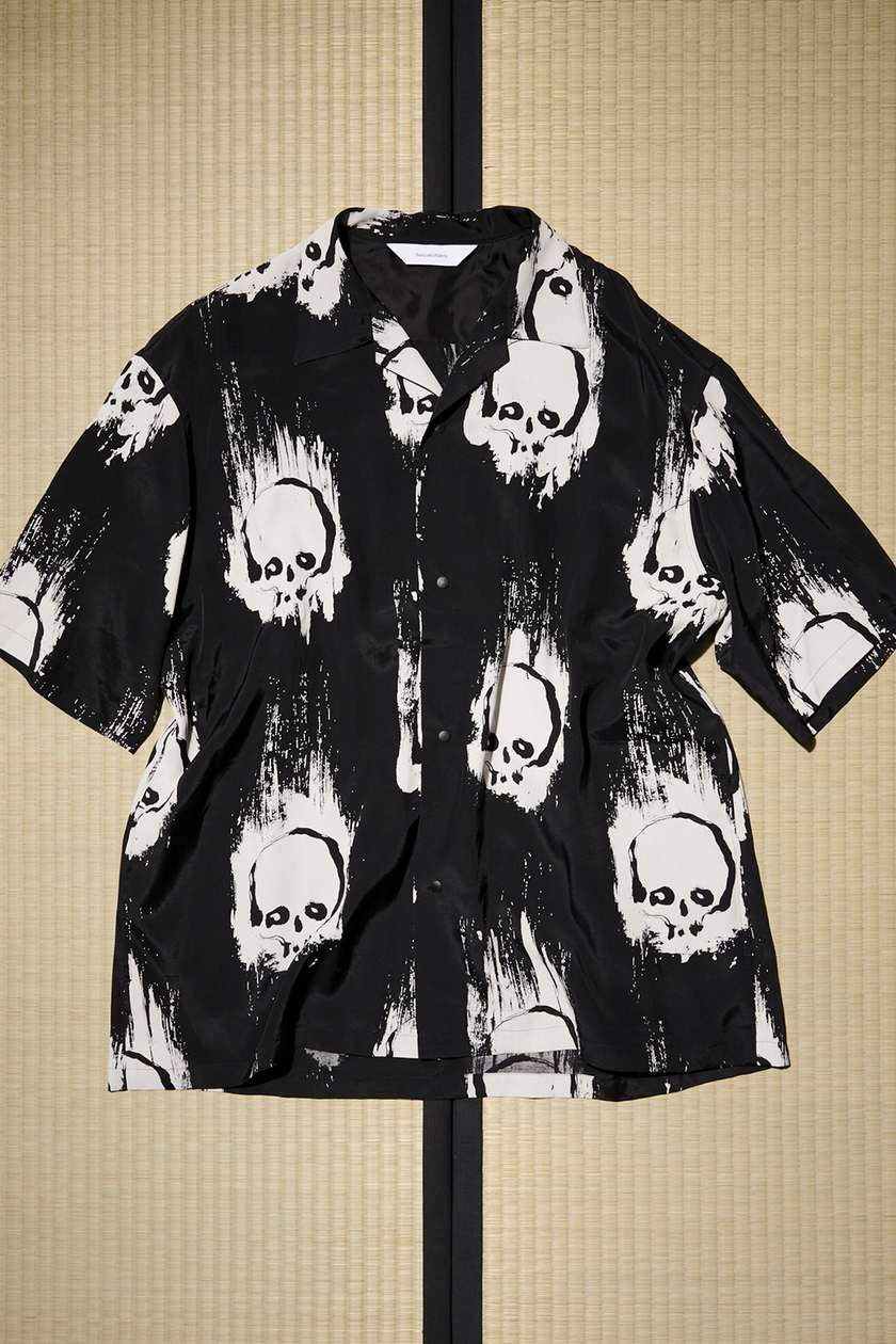 Kazumichi Maruoka 标志性的骷髅元素和用日文字体书写的“Abrakatabra”字样的注入,并采用热染色技术衬衫材质打造,辨识度与可玩性极强。