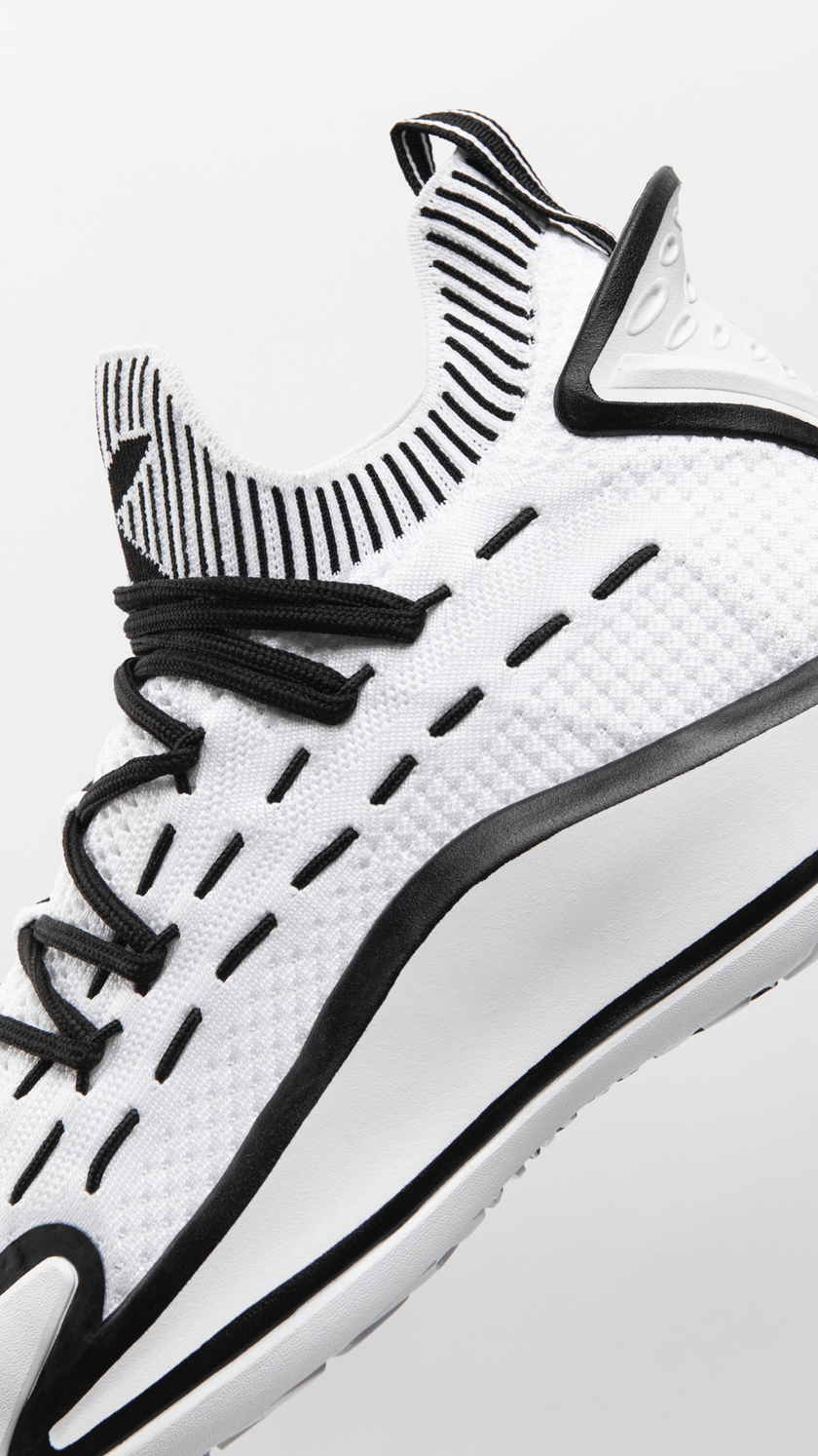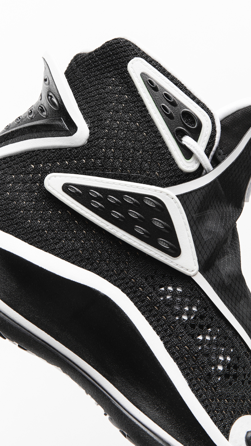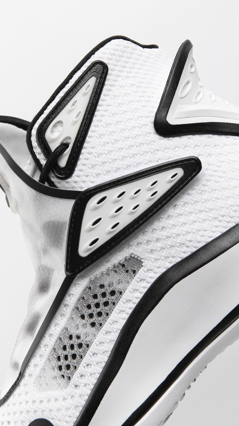 均采用黑白色调演绎,二次元画风线条勾勒,动漫感满满。鸳鸯设计也极具个性,上脚必然会吸睛无数。另外,网眼材质与编织物料塑造的鞋身还拥有极佳的透气性,夏日实战非常合适。