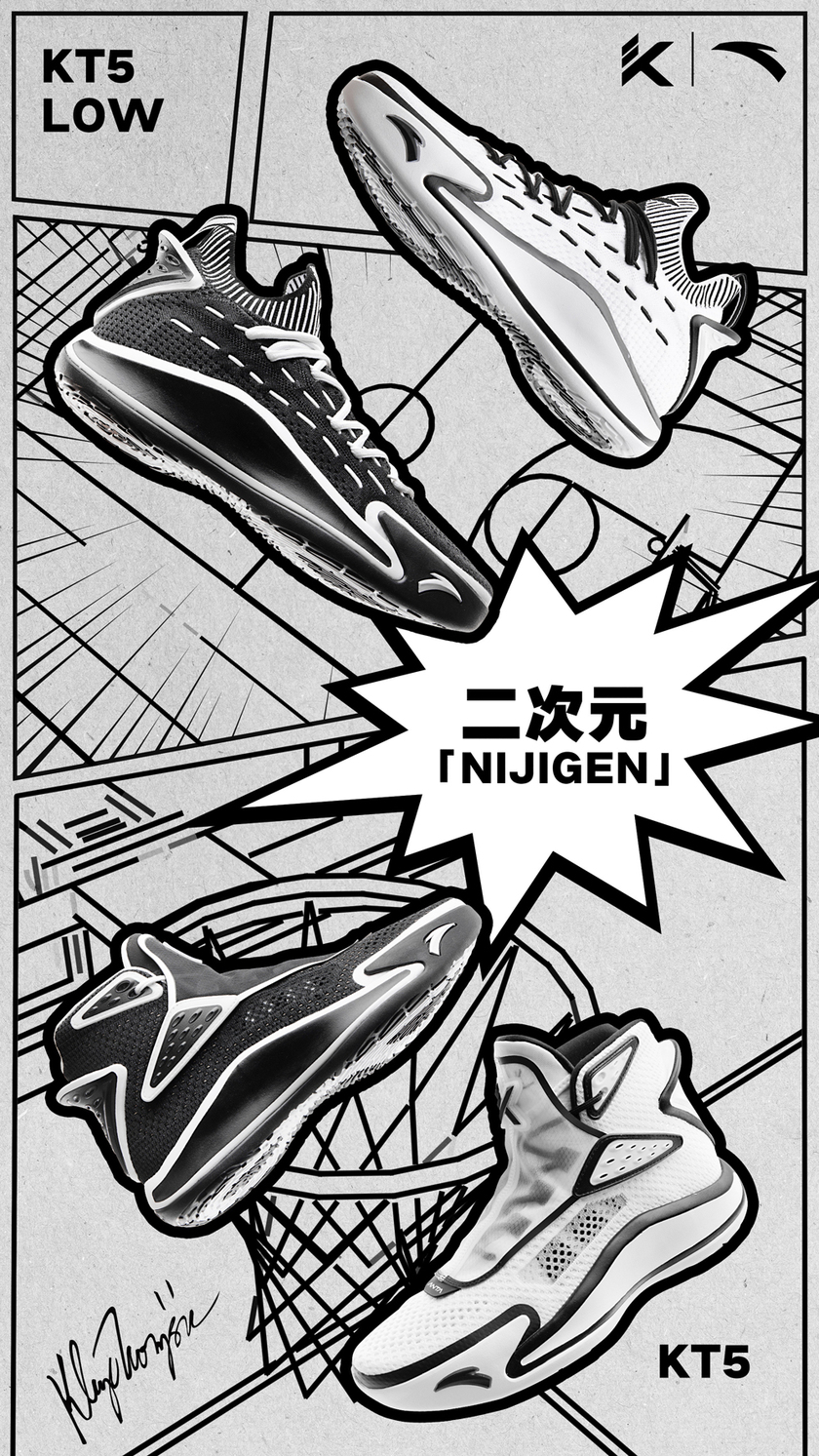 最近汤普森签名战靴 ANTA KT5 系列可谓话题度颇高,继六神联名之后,又有两款二次元鸳鸯配色吸引了无数实战党的关注。这两款配色仅是高帮与低帮的区别,在设计上大致相同。