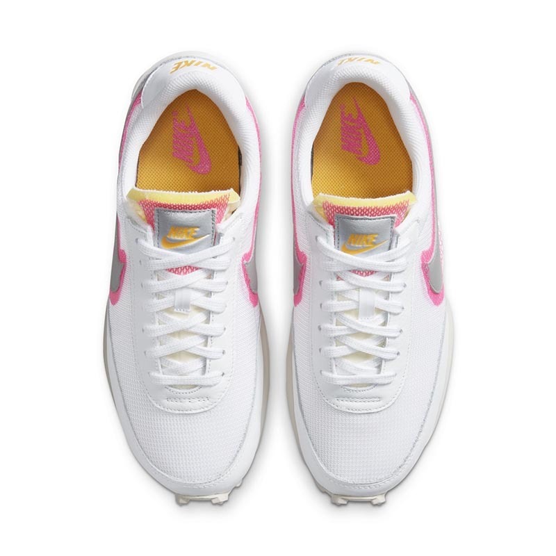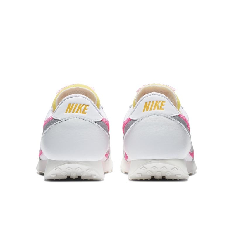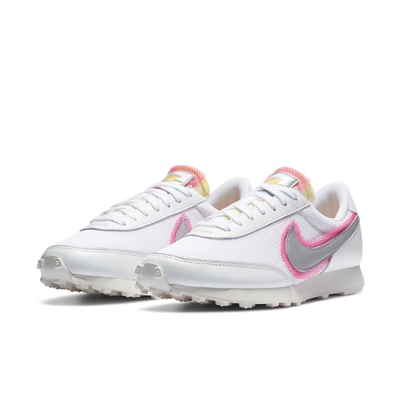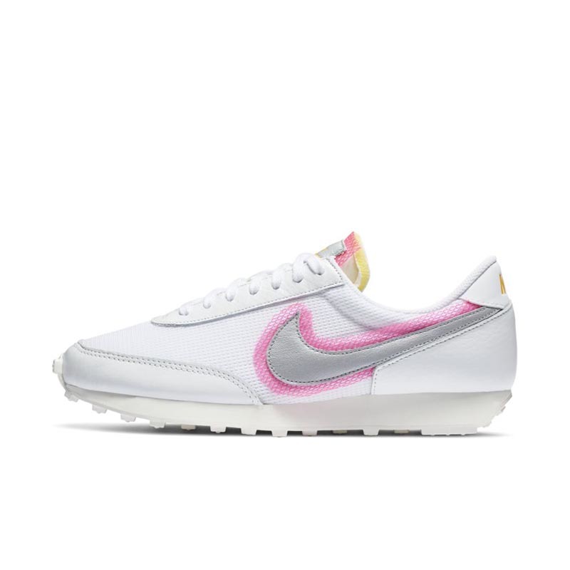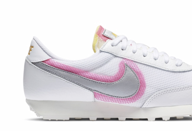 继晕染设计 Blazer Mid 之后,Nike 又为因 Sacai 联名人气大涨的复古跑鞋 Daybreak 带来了相似设计。全新的 Nike Daybreak 以大面积白色鞋身示人,鞋侧银色 Swoosh 饰以粉色晕染,仙气十足。同时鞋舌处也点缀少许晕染色调,搭配外露海绵设计,整体氛围清新又潮流。对于这种干净清爽又带点甜的设计,小姐姐们是不是毫无抵抗力!心动就密切关注一下,夏天上脚超适合哦。