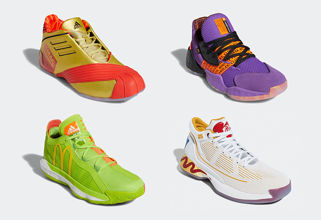 以旗下球星签名战靴 Harden Vol.4、Dame 6、D Rose 10 以及 T-Mac 1 为蓝本,adidas 携手全球快餐巨头麦当劳打造了全新联名系列。这一系列中除了 D Rose 10 以外,其他三款在 3、4 月份就已曝光过,本次再次曝光,则是因为发售日期临近。