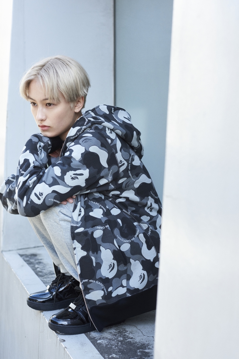 两个月后,近日 COMME des GARÇONS x A BATHING APE 联名曝光。双方以迷彩元素与各自标志性设计主打,带来了包括 T恤、卫衣、衬衫等单品。