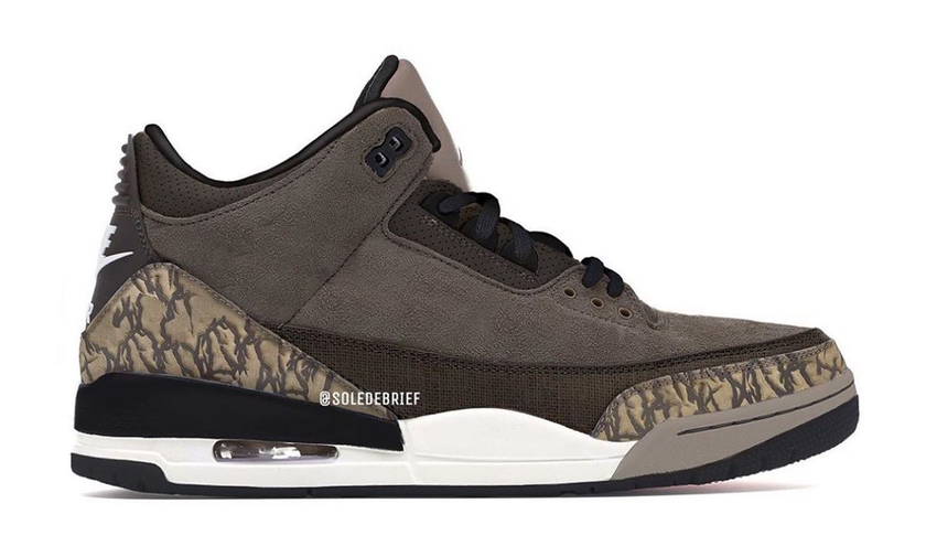 从图中可以看到鞋款以 Travis Scott 偏爱的深咖色主打,通过不同深浅以及多材质拼接营造鞋身层次。AJ 3 标志性爆裂纹则以 Travis Scott 一贯的风格点缀,充满街头潮流感的同时也带来极高辨识度。