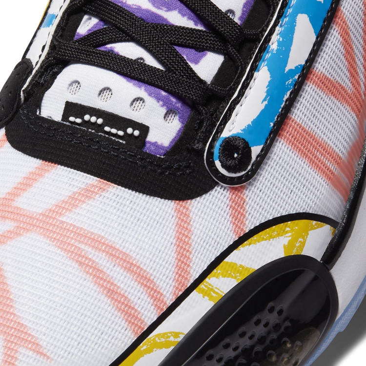 整双鞋采用透明网眼材质主打塑造,覆盖鞋面的涂鸦手绘线条堪称最大亮点,赋予整双鞋二次元风的同时也让整体吸睛度艺术感上升了一个台阶。
