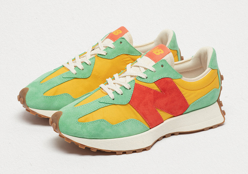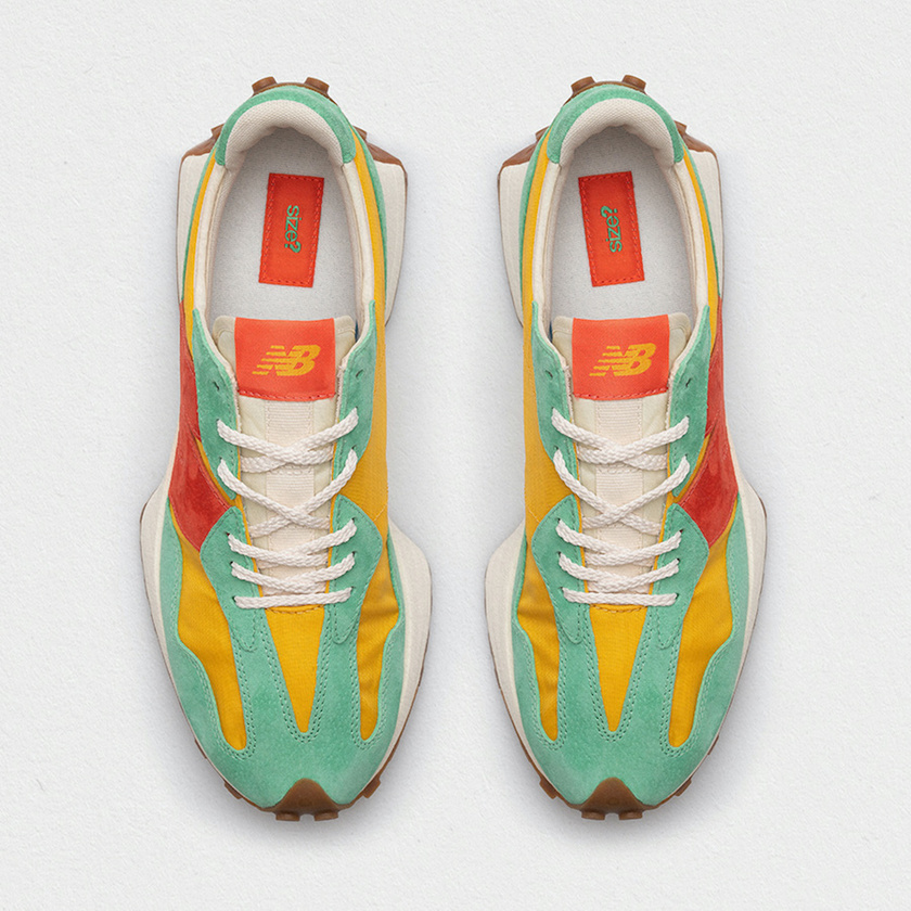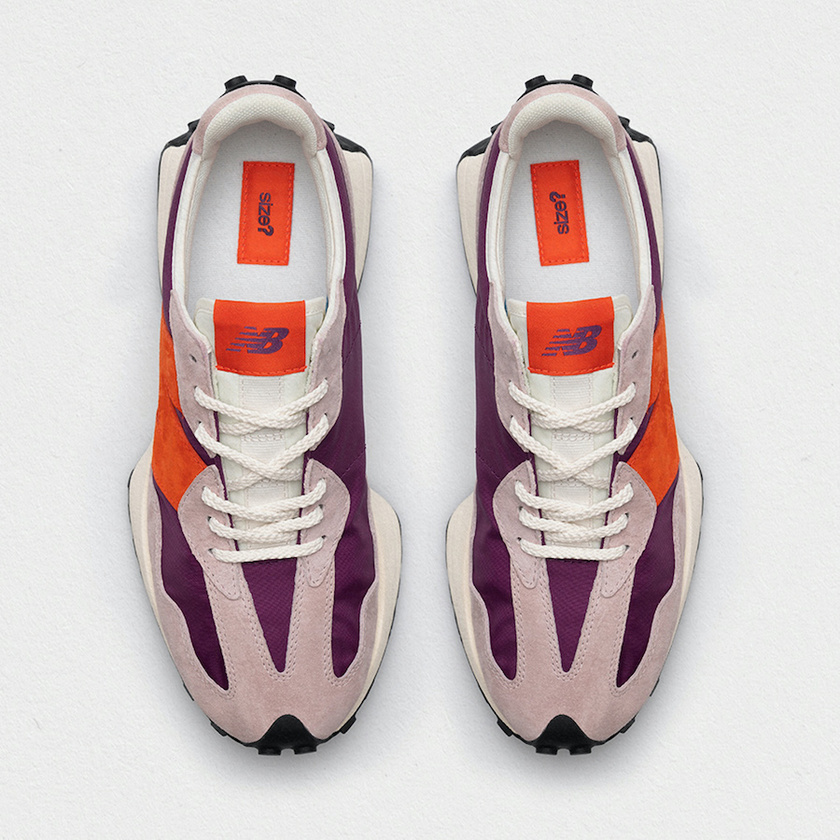 此前曝光过的欧洲知名潮流店铺 size?与 New Balance 327 联名系列,近日将在海外登场了。