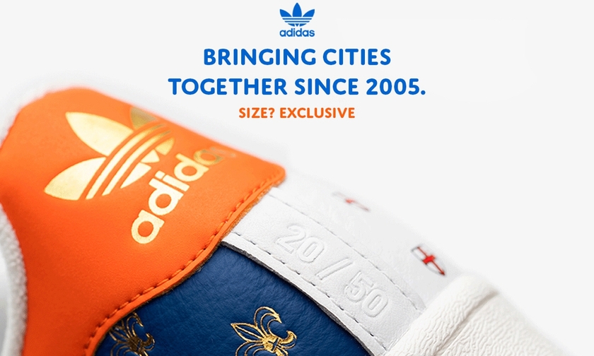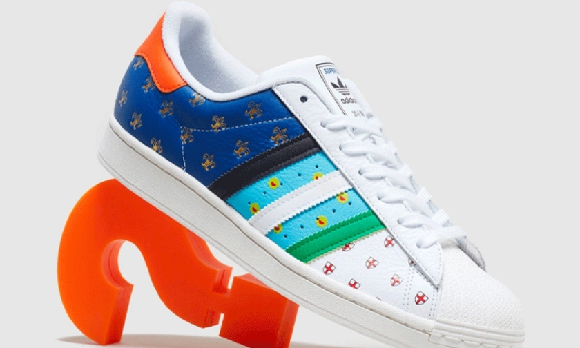 该配色灵感源于 Superstar 的“City Pack”系列,整双鞋融合了柏林、伦敦、巴黎、布宜诺斯艾利斯、纽约、波士顿、东京配色元素。醒目的撞色拼接以及显眼的印花元素,让这次联名外观非常讨喜。此外,后跟“20/50”字样表明了纪念限定身份。
