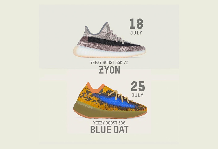 原本除了白斑马 Yeezy Boost 350 V2 之外,Yeezy Boost 350 V2 “Zyon” 和 Yeezy Boost 380 “Blue Oat” 也将于本月登场。但由于全球疫情以及美国暴乱影响, “Zyon” 和 “Blue Oat” 发售延迟。在等待一段时间后,今日,这两款跳票配色确定了新的发售日期。