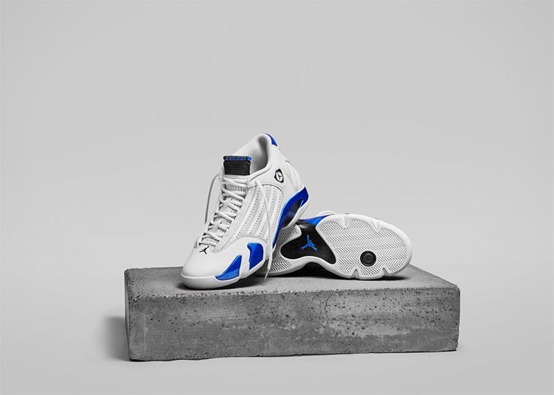 似乎最近的 AJ 每款配色都会与联名、PE 神似,这款则是撞脸雷吉·米勒 PE,大面积白色皮革覆盖,鞋舌、后跟以及中底处蓝色细节的点缀,气质清爽,吸睛度也爆棚。