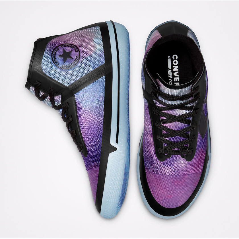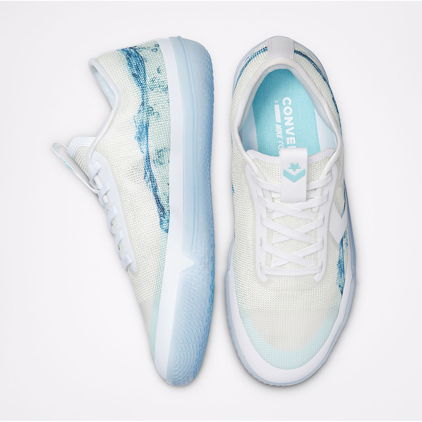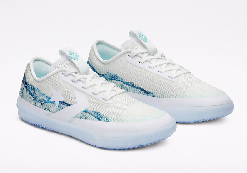 系列包括高帮和低帮两个版本,高帮 All Star Pro BB 采用蓝色和紫色扎染鞋面示人,搭配黑色细节以及冰蓝水晶外底,颜值吸睛气质高级。低帮 All Star Pro BB 则以白色主打,点缀水蓝色水波纹印花,夏日清新感爆棚。