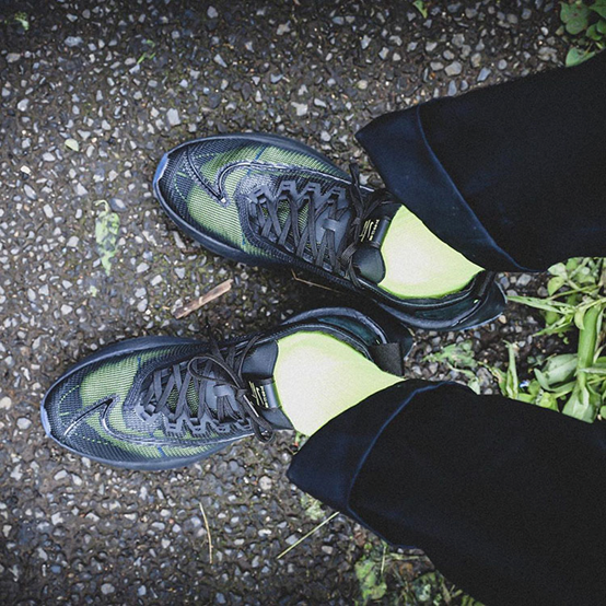 做镂空的结构,潮流感更是非常强烈,功能性上也是大大减轻了鞋身重量。鞋面也有所配合在主要位置使用“可视化”设计,透视效果让大家可以在袜子的穿搭中做更多文章。大底的轮廓仍然参考了”破二”跑鞋的船型设计,舒适性和外观潮范的优势进一步放大。这双鞋可以说是今年Nike跑鞋的三巨头。