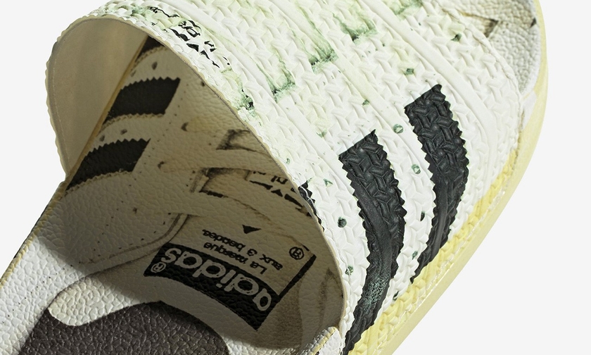 今年是 adidas 旗下经典鞋款 Superstar 诞生 50 周年,品牌以这双鞋为原型推出了不少联名和新配色。而此番,以该鞋型为蓝本,品牌带来了一款与众不同的拖鞋设计。