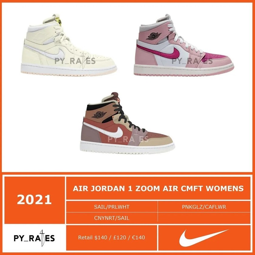 另外十双都是Air Jordan 1 Zoom AIR CMFT 新配色,可以看出明年 AJ 1 Zoom 会成为 AJ 1 系列的主力军,要入手哪双呢?可能后续更多实物曝光大家就会有答案了。