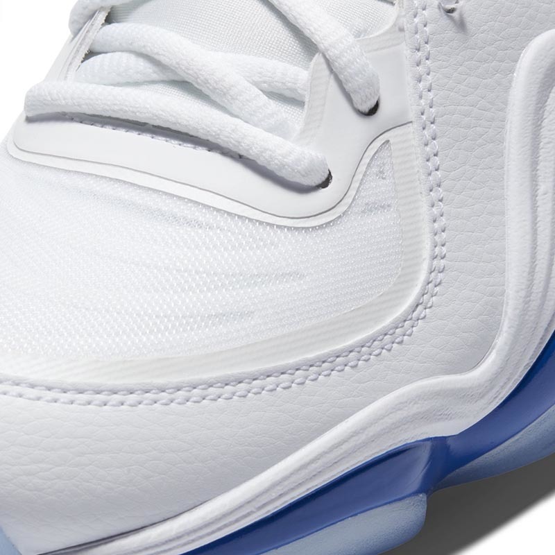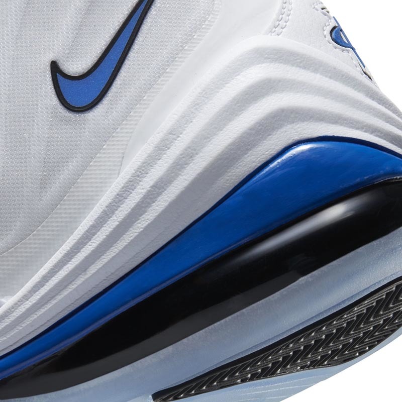 整双鞋采用白色皮革搭配透气网布塑造,鞋舌内靴部位黑白相间的条纹元素,致敬魔术队复古球衣。搭配蓝色 1Cent 便士 Logo 以及鞋侧 Swoosh ,中底蓝色细节,经典熟悉的魔术队气质顿显。