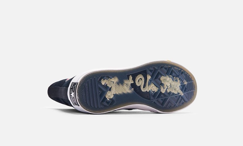 这款联名以《兔八哥》动画中的知名角色——兔八哥、波基猪、达非鸭等形象主打,黑色帆布点缀醒目的印花以及 KITH logo,辨识度极高。另外,鞋垫 logo 印花以及半透明外底下的印花文字,为鞋款增加了亮点,也表明了联名身份。