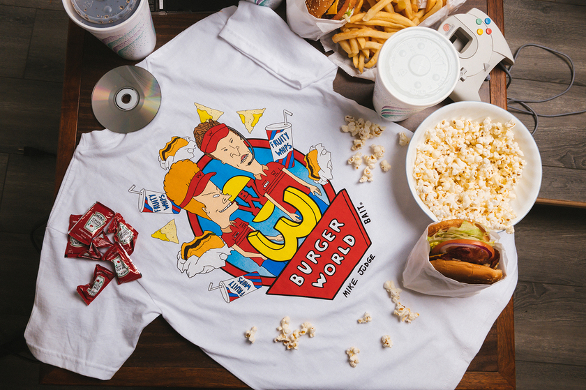 携手美国人气动画片《Beavis&Butthead》,美国球鞋名所 BAIT 打造了三款联名 T 恤。
