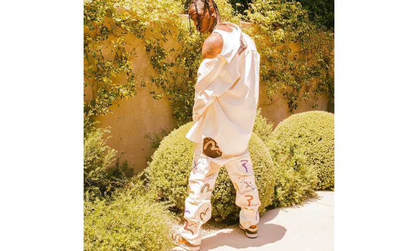 继在科勒·卡戴珊的生日会上上身曝光后, Travis Scott 再次晒出了与 EVISU 的联名牛仔裤。以 EVISU 经典多袋牛仔裤为蓝本,这次 Travis Scott 选择白色呈现,多处 Cactus Jack logo 十分抢眼。目前关于这款联名的发售信息尚未曝光,但相信离见面也不远了,喜欢的朋友关注一下。