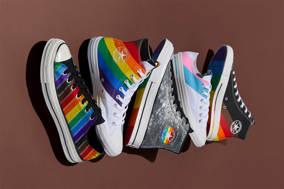 除了AF1这样的板鞋之外,帆布鞋也是夏日不可或缺的鞋型款式选择。Nike同样在旗下的Converse经典款式Chuck Taylor上带来了采用设计,主打的两款黑白两色的1970鞋型上将彩虹直接点缀在鞋身和外底之上,同样营造了满满的百搭感。当然也不乏标志性的全彩虹配色鞋身,多样的款式也可以给予大家更多的选择。