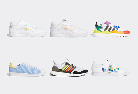 看完Nike阵营,再让我们看看adidas方面的竞品。不同于其他品牌都主要强调彩虹元素,adidas的设计风格大多则都以白色为主,将彩虹元素作为一个装饰元素。该系列中包含了Superstar、UltraBoost、Nite Jogger、NMD R1、贝壳头等旗下所有的主要休闲鞋款。风格上更多偏向女性,喜欢的小姐姐可以多多关注一下。