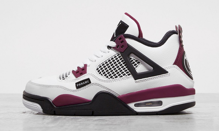 继此前实物谍照释出后,近日网上浮现了更清晰的 GS 尺码实物近赏照。整双鞋采用白色打底,并通过酒红色、黑色以及灰色细节营造视觉层次感。而鞋侧黑底白字的 “PANAM” 标签,与后跟处双方联名都有的 PSG 与飞人结合联名 logo ,则表明了联名身份,辨识度极强。