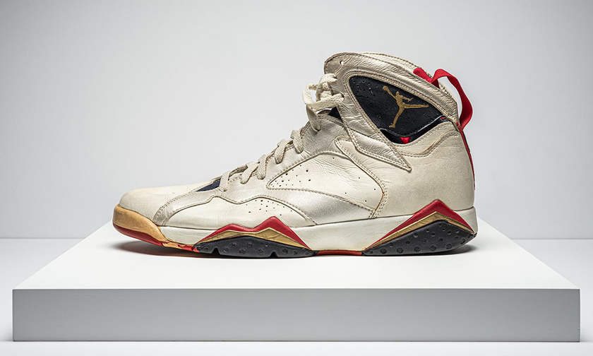 顾名思义,本次拍卖会的拍品主要是乔丹职业生涯中亲穿过的一些 Air Jordan 鞋款,总共 11 双,包括在早起新秀赛季上脚的球员专属 Nike Air Ship,梦之队比赛中穿着的 Air Jordan 7“Olympic”以及 1998 年 NBA 总决赛训练时穿着的 Air Jordan 14 等等。