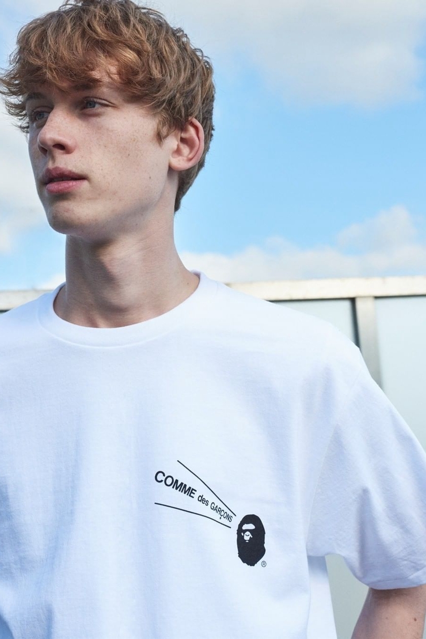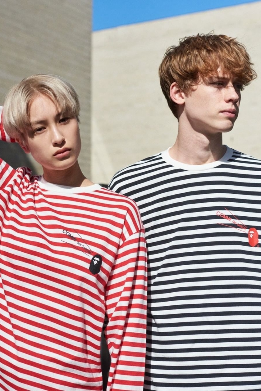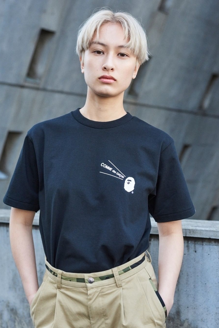 日本街头品牌 A BATHING APE 最近正式公开了为 BAPE STORE:registered: COMME des GARCONS 大阪门店特别推出的一组别注系列。系列包括短袖 T 恤、连帽卫衣外套及主打条纹设计的长袖 T 恤等单品。