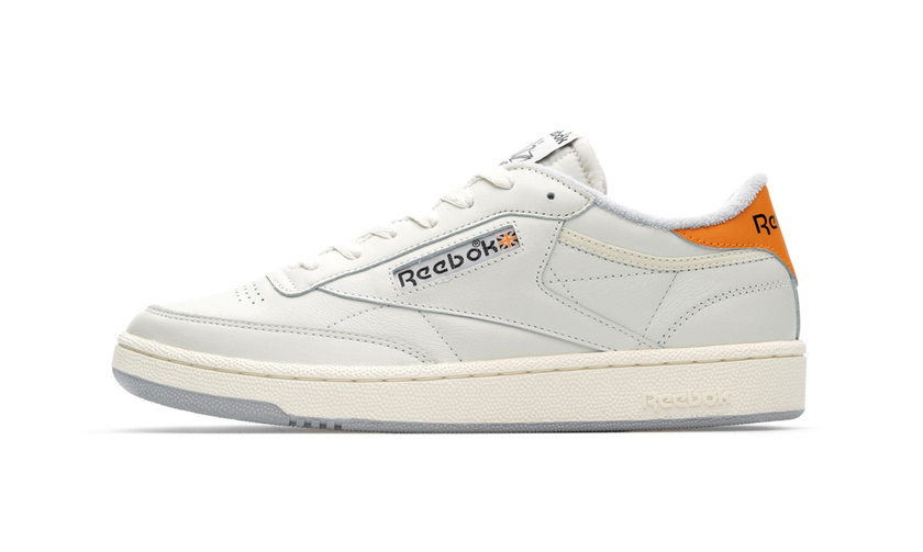 本次联名延续 Club C 经典外观轮廓,采用复古皮革以及法式毛巾面料塑造鞋面和内衬。鞋跟、鞋侧与鞋舌处 size? 标志性的黑/橙色调为鞋款带来了更抢眼的视觉效果。