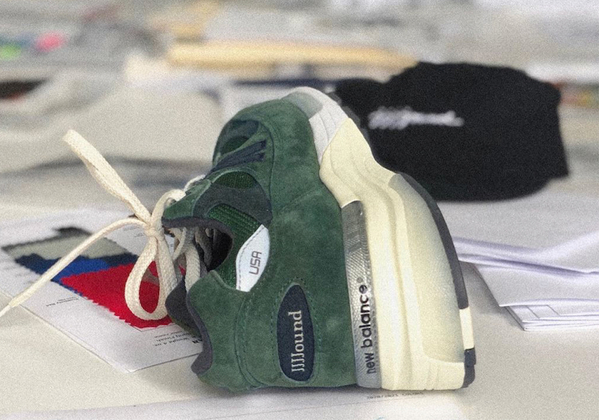 森林绿配色采用质地极佳的森林绿麂皮材质打造,鞋侧的海军蓝配色“N”字和鞋跟处的“JJJound” logo 与整体形成鲜明对比。