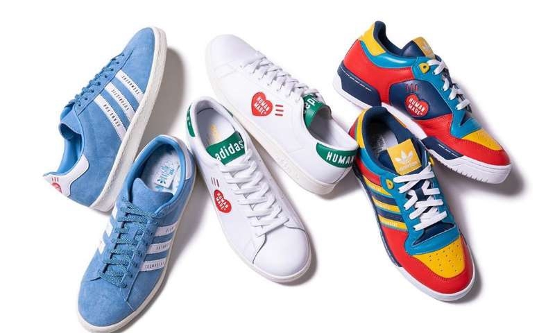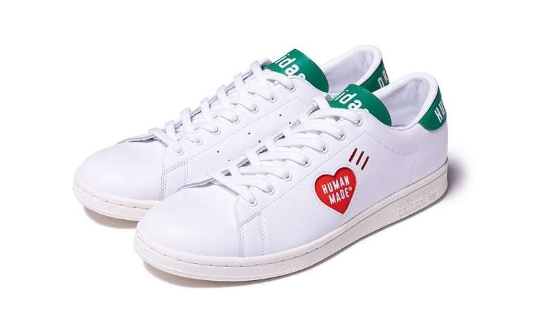 系列以经典鞋鞋型 Stan Smith 、Rivalry 与 Campus 为蓝本素在。在保留鞋款轮廓的基础下,注入了 Human Made 标志性心形元素。