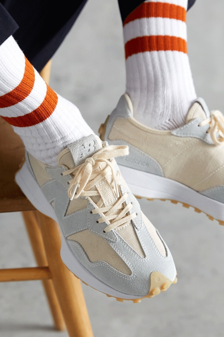 除了 New Balance 992 以外,New Balance 今年登场的全新鞋型 327 也凭借着抢眼的配色设计和重磅联名在球鞋市场中大受欢迎,成为了 New Balance 当下最火的跑鞋之一。