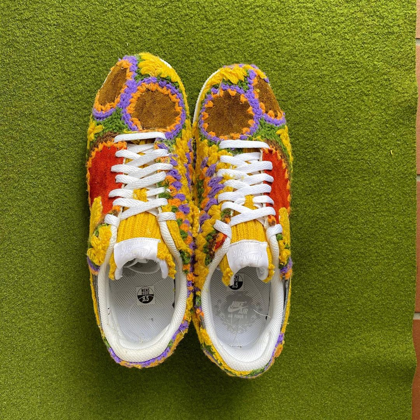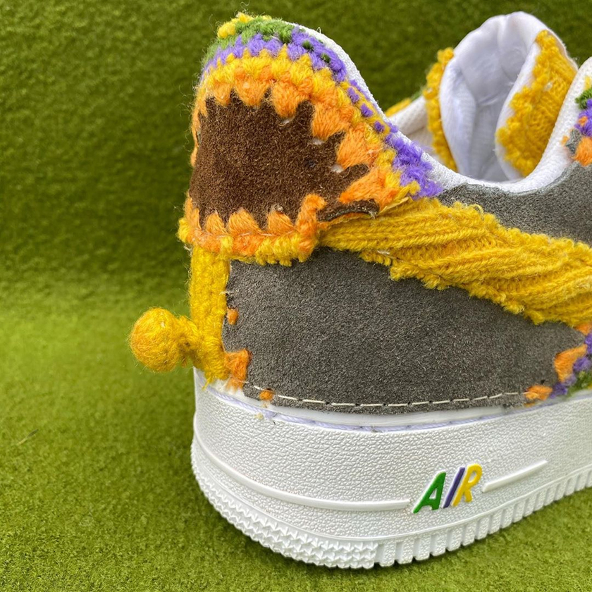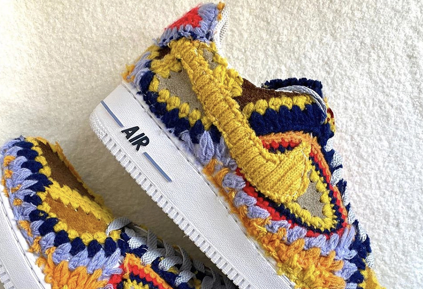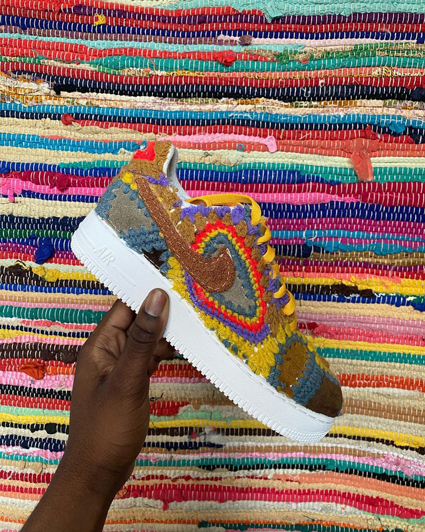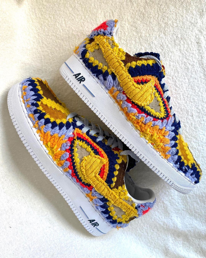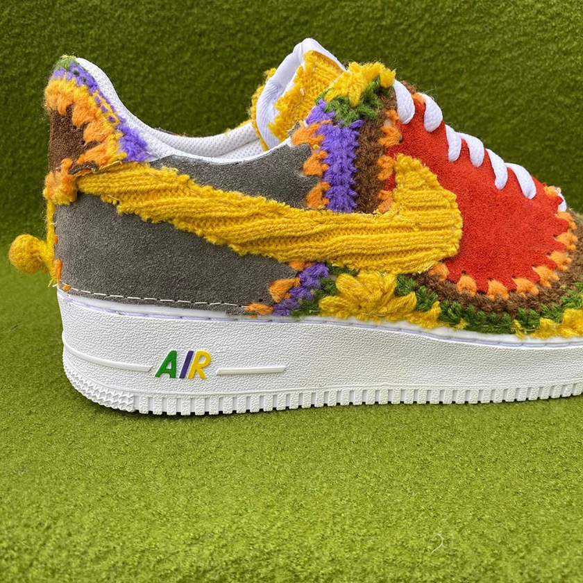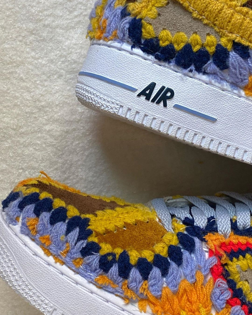 与以往我们常见的定制款不同,玩家 darkphilknight 打造的 Air Force 1 采用与羊毛地毯相同的纹理及材质塑造鞋款。丰富的色调与图案组合,使得他的作品民族风情浓郁,辨识度也很强。