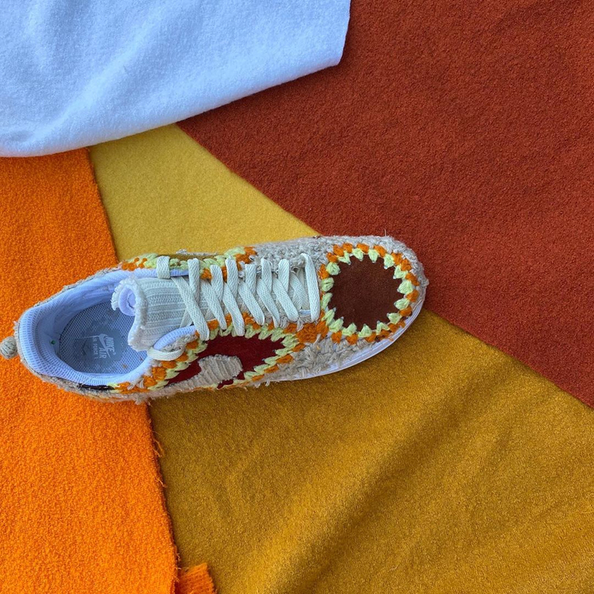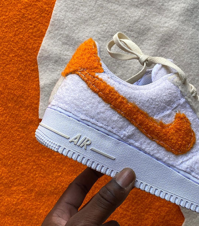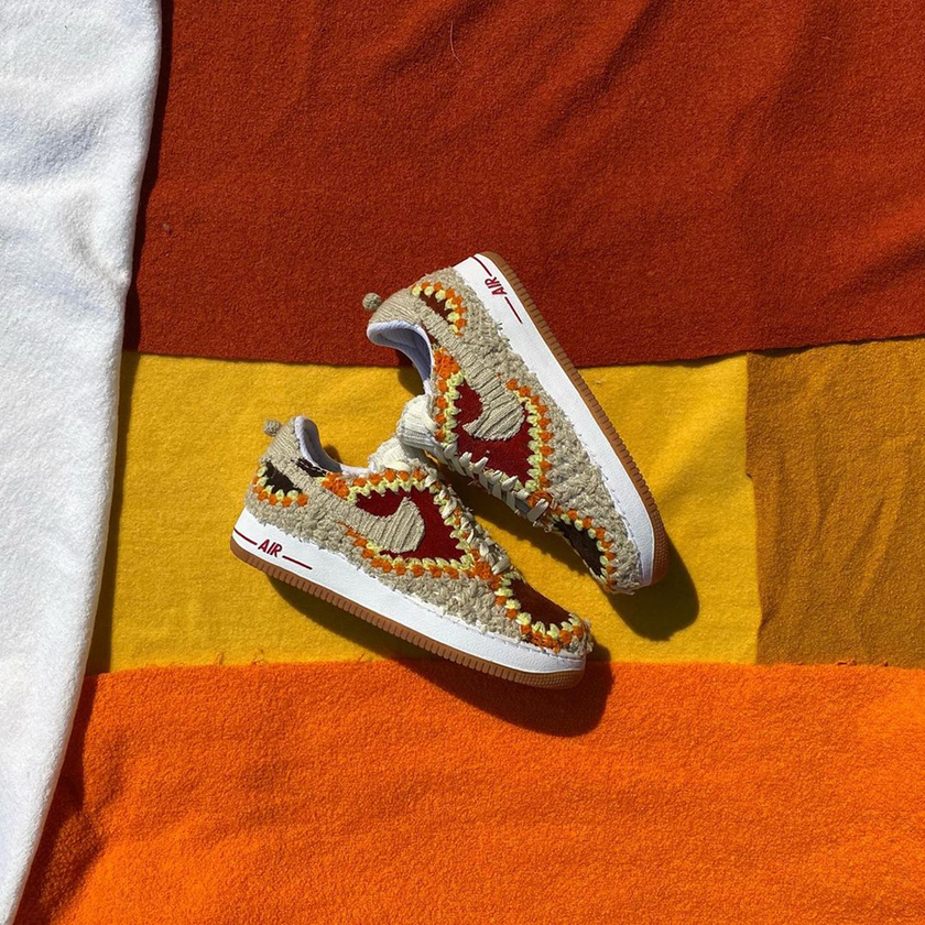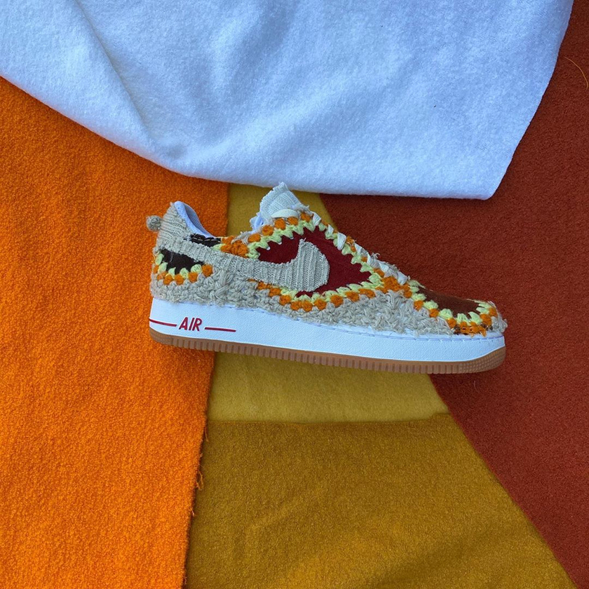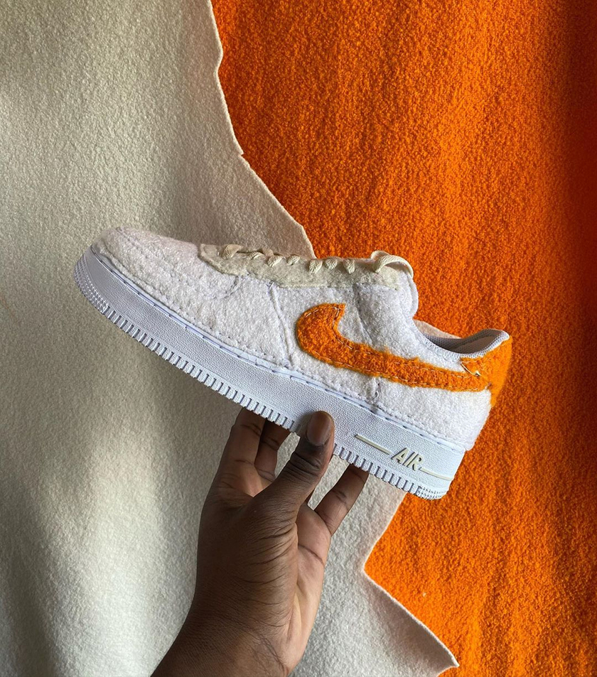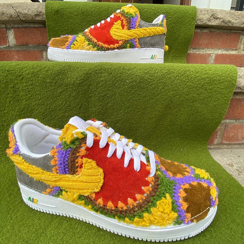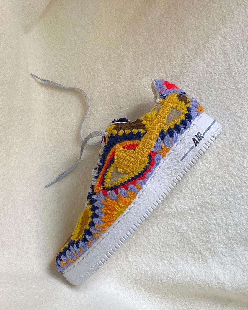 与以往我们常见的定制款不同,玩家 darkphilknight 打造的 Air Force 1 采用与羊毛地毯相同的纹理及材质塑造鞋款。丰富的色调与图案组合,使得他的作品民族风情浓郁,辨识度也很强。