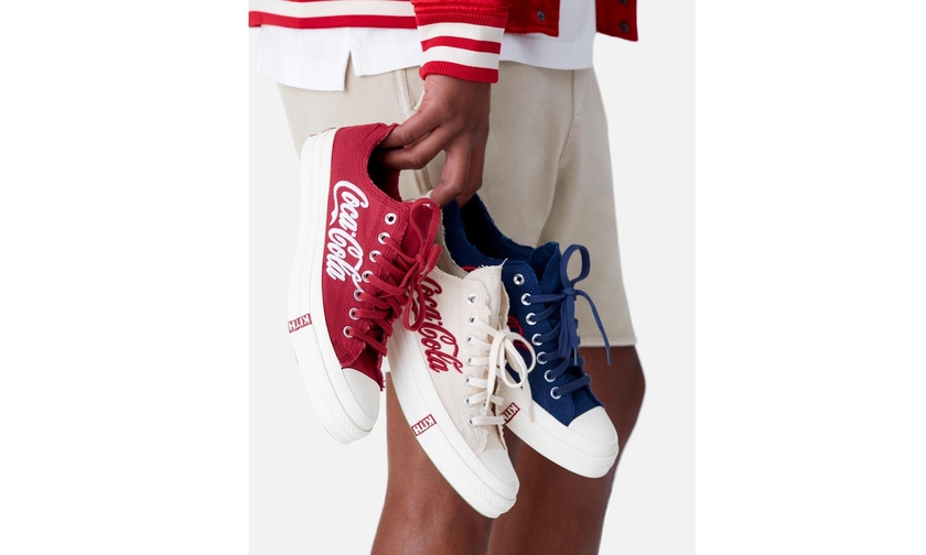 三方联名鞋款则以 Chuck 70 Low 鞋型作为蓝本,Coca-Cola 主题的红、白、蓝三色主打,点缀 Coca-Cola 精致 logo 刺绣与 KITH ,经典简约又无比耐看。