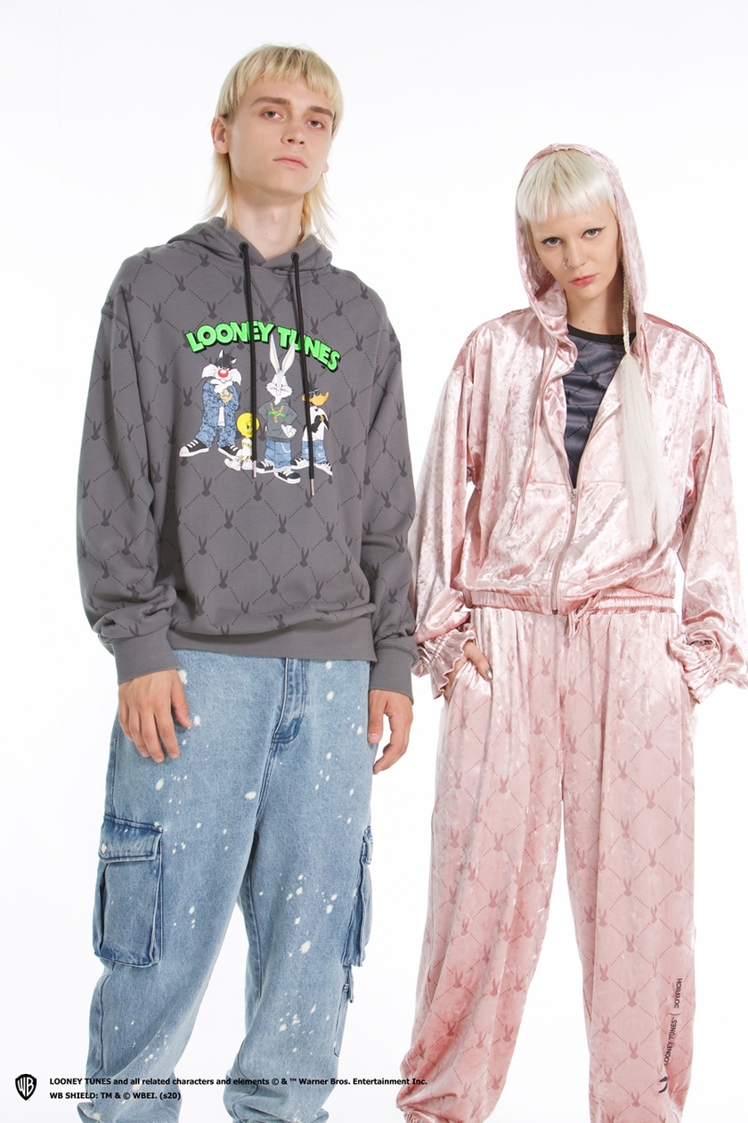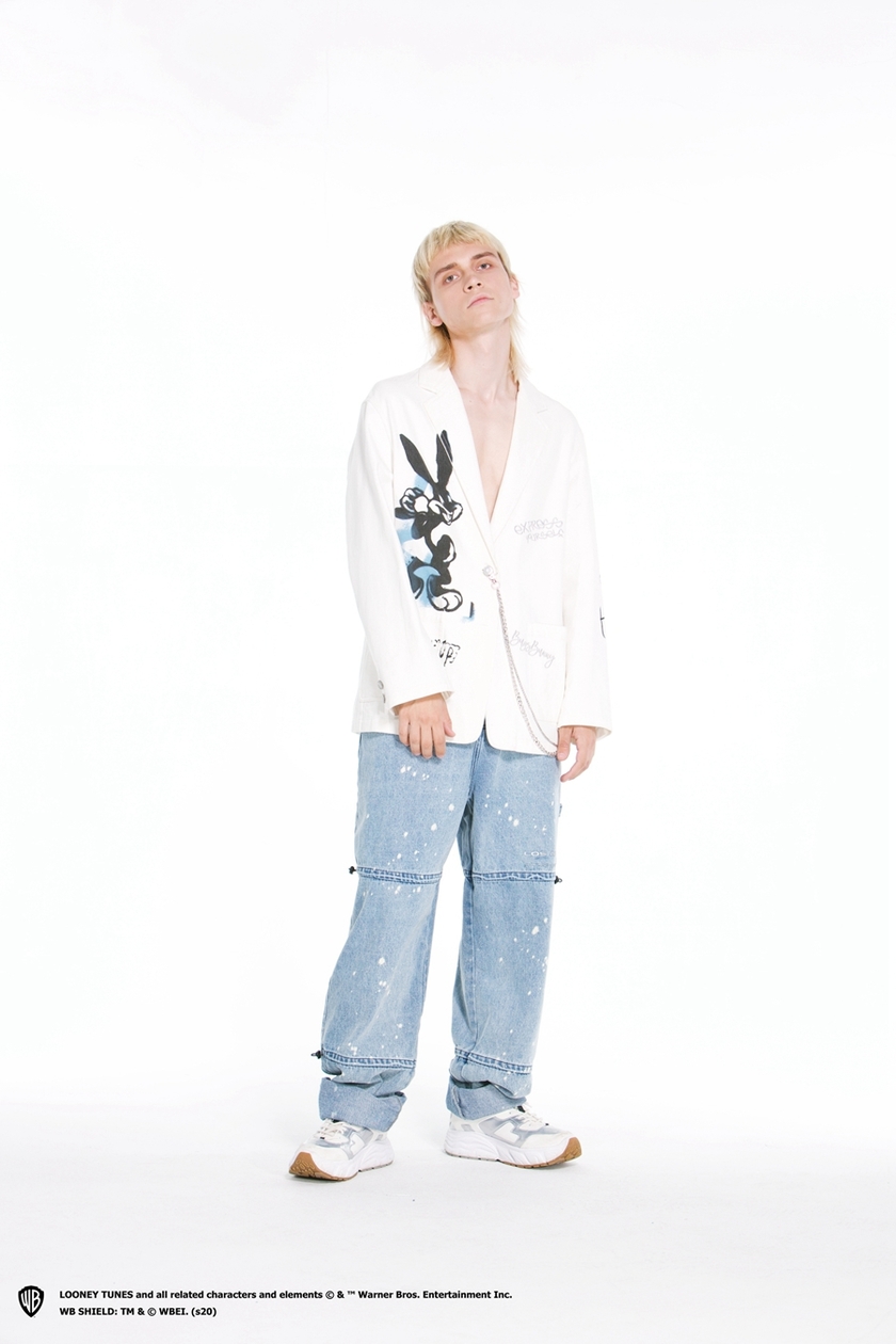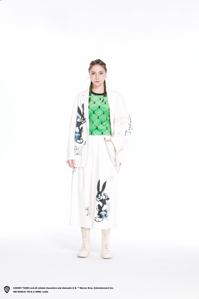 单品方面涵盖了西装,衬衫,针织衫,仿皮草外套等, Bugs Bunny 可爱形象的注入以及《乐一通》家族的整体卡通形象重塑、创新,令经典的卡通形象与 JOYRICH 的街头时尚感和幽默诙谐感融为一体。