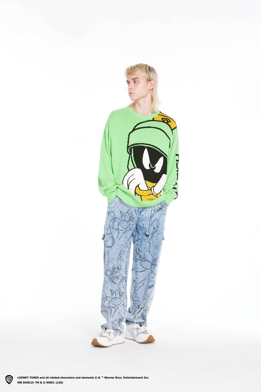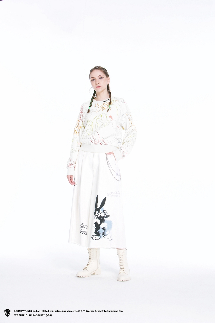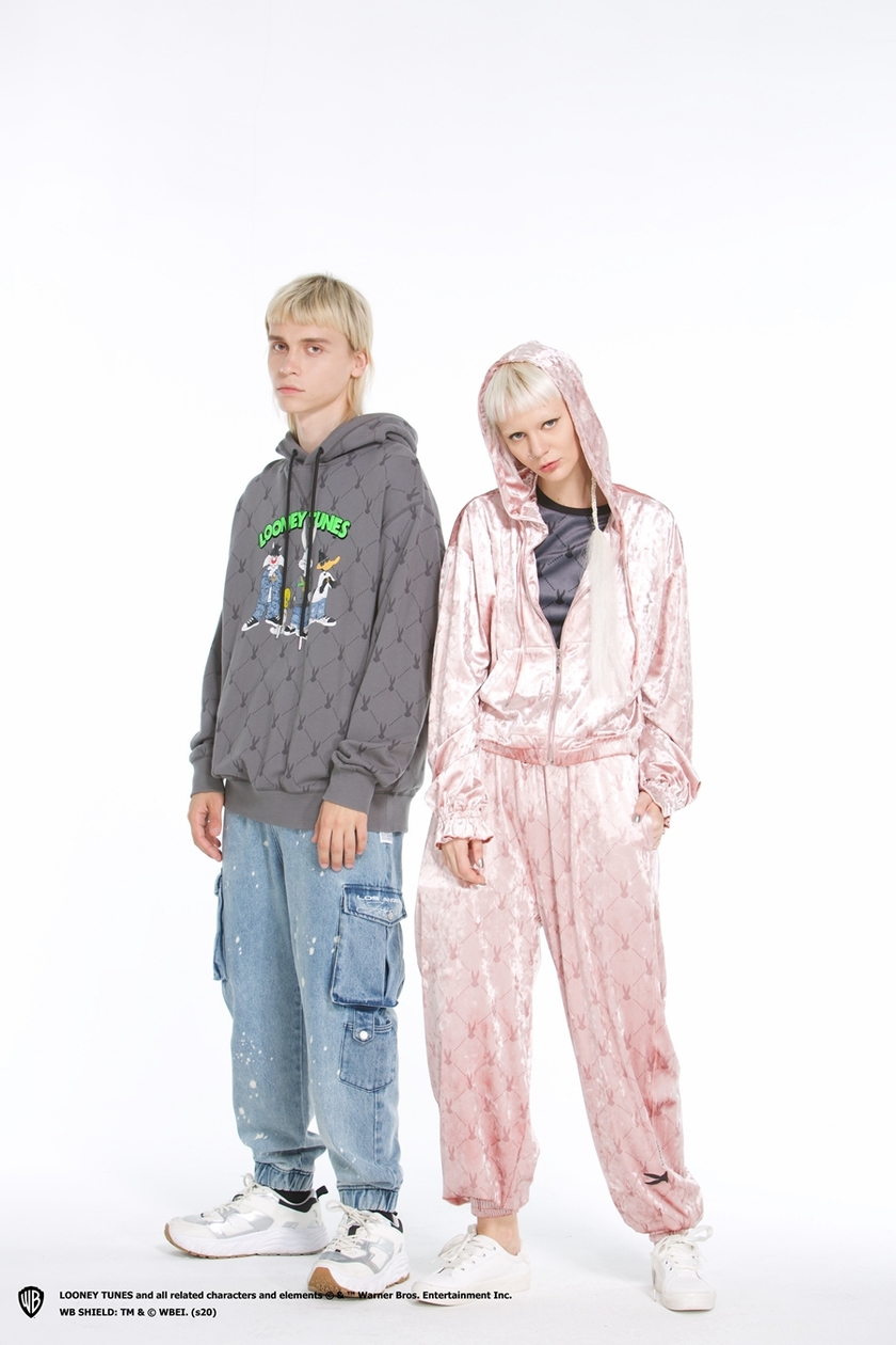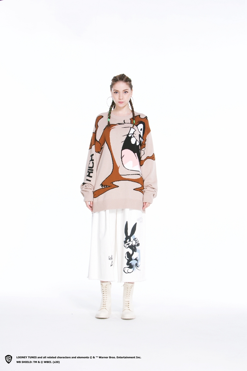 单品方面涵盖了西装,衬衫,针织衫,仿皮草外套等, Bugs Bunny 可爱形象的注入以及《乐一通》家族的整体卡通形象重塑、创新,令经典的卡通形象与 JOYRICH 的街头时尚感和幽默诙谐感融为一体。