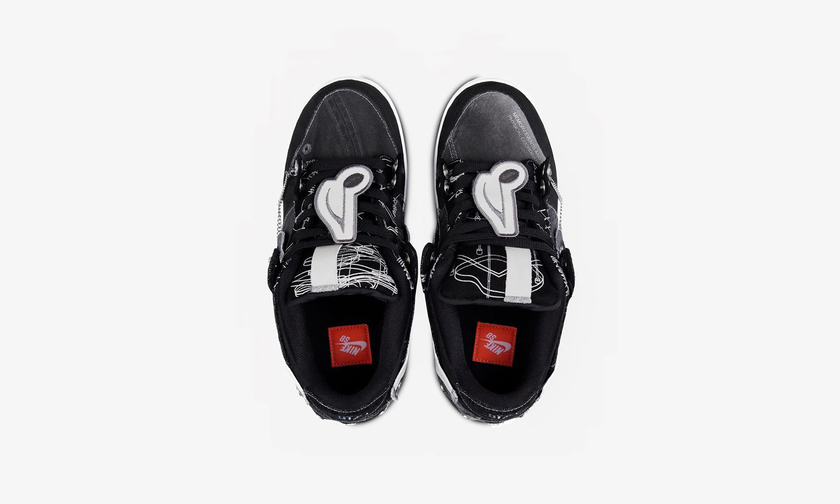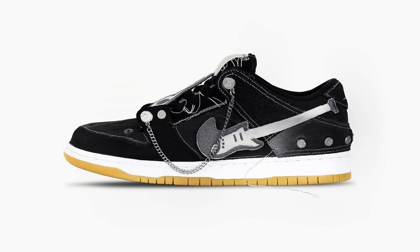 而整双鞋最大的亮点是鞋侧别具一格的吉他造型 Swoosh ,与鞋舌处音乐符号呼应,带来浓烈的摇滚气息。另外,鞋侧垂下的银色链条也很有灵性,瞬间将朋克风拉满。